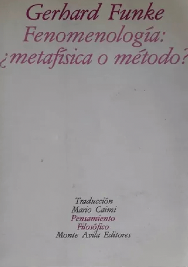 Fenomenología : metafísica o método? / Gerhard Funke. by